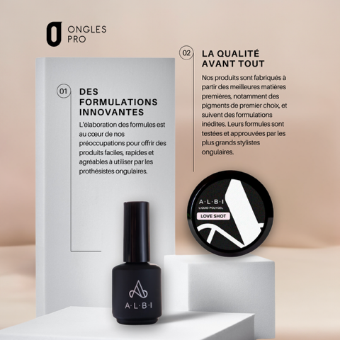 L’innovation est au cœur de la marque Ongles Pro : nous sommes fiers d’avoir été les pionniers du Polygel liquide en France, révolutionnant ainsi vos méthodes de travail. Nos produits sont d’une qualité excellente, spécifiquement pensés pour simplifier votre quotidien de prothésiste sans jamais faire de compromis sur la tenue et le rendu final.